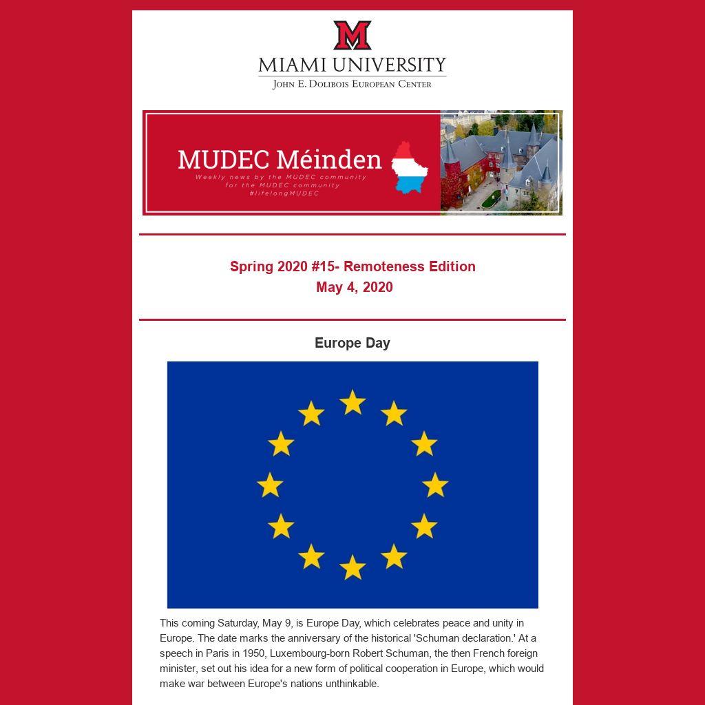 5. Why did you choose to study abroad with MUDEC and what are you looking forward to now that you are back in the U.S.? Alex: I chose to study abroad with MUDEC because I have never been to Luxembourg before, wanted to see what it was like living with a host family and found the location perfect for traveling to other local countries. Now that I am back in the U.S., I am looking forward to further building my relationship with the Public Affairs Section of the Embassy as I have been working with them throughout the semester, although we are no longer face to face.