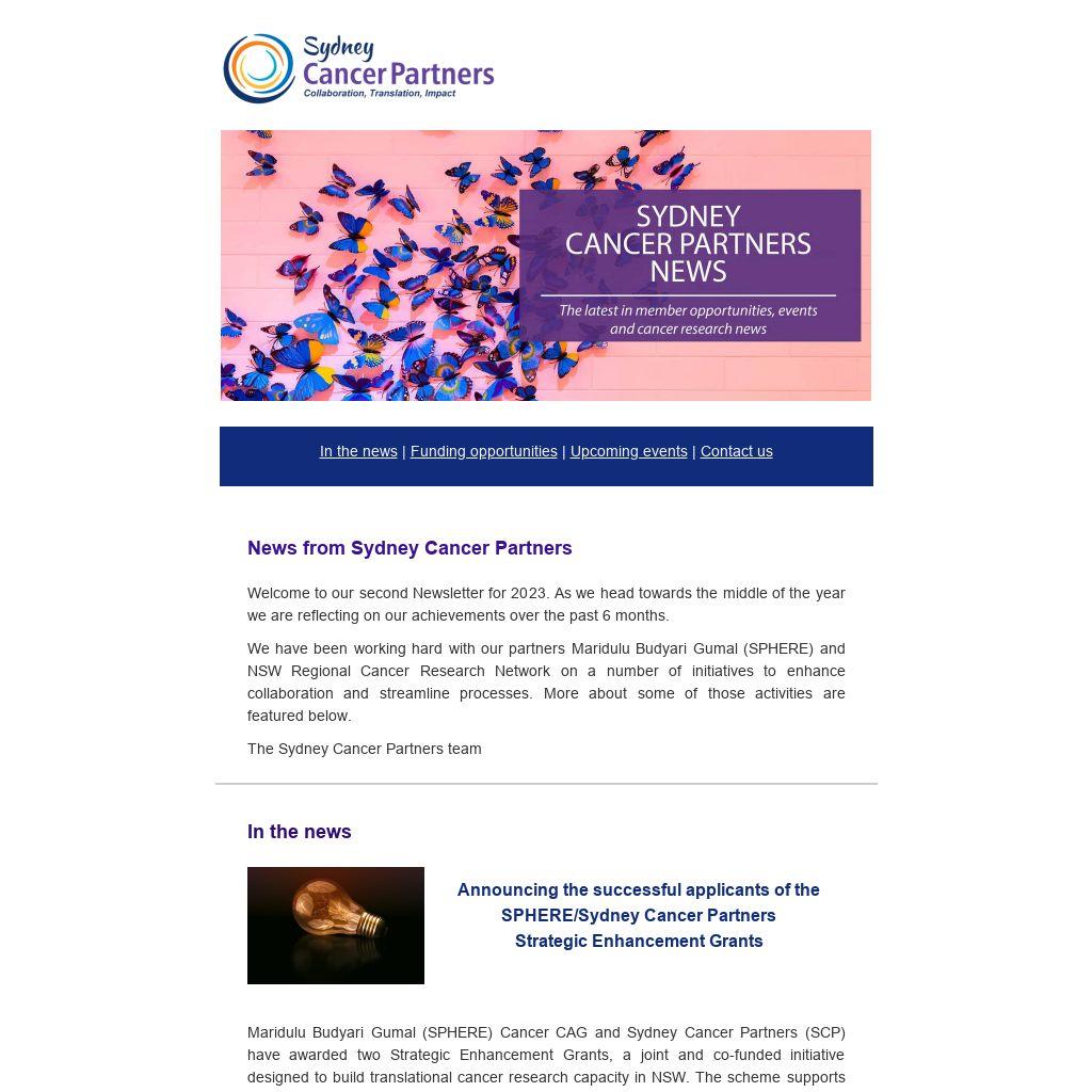 News from Sydney Cancer Partners Welcome to our second Newsletter for 2023. As we head towards the middle of the year we are reflecting on our achievements over the past 6 months.