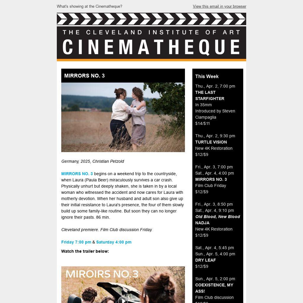 Fri., Apr. 3, 7:00 pm Sat., Apr. 4, 4:00 pm MIRRORS NO. 3 Film Club Friday $12/$9