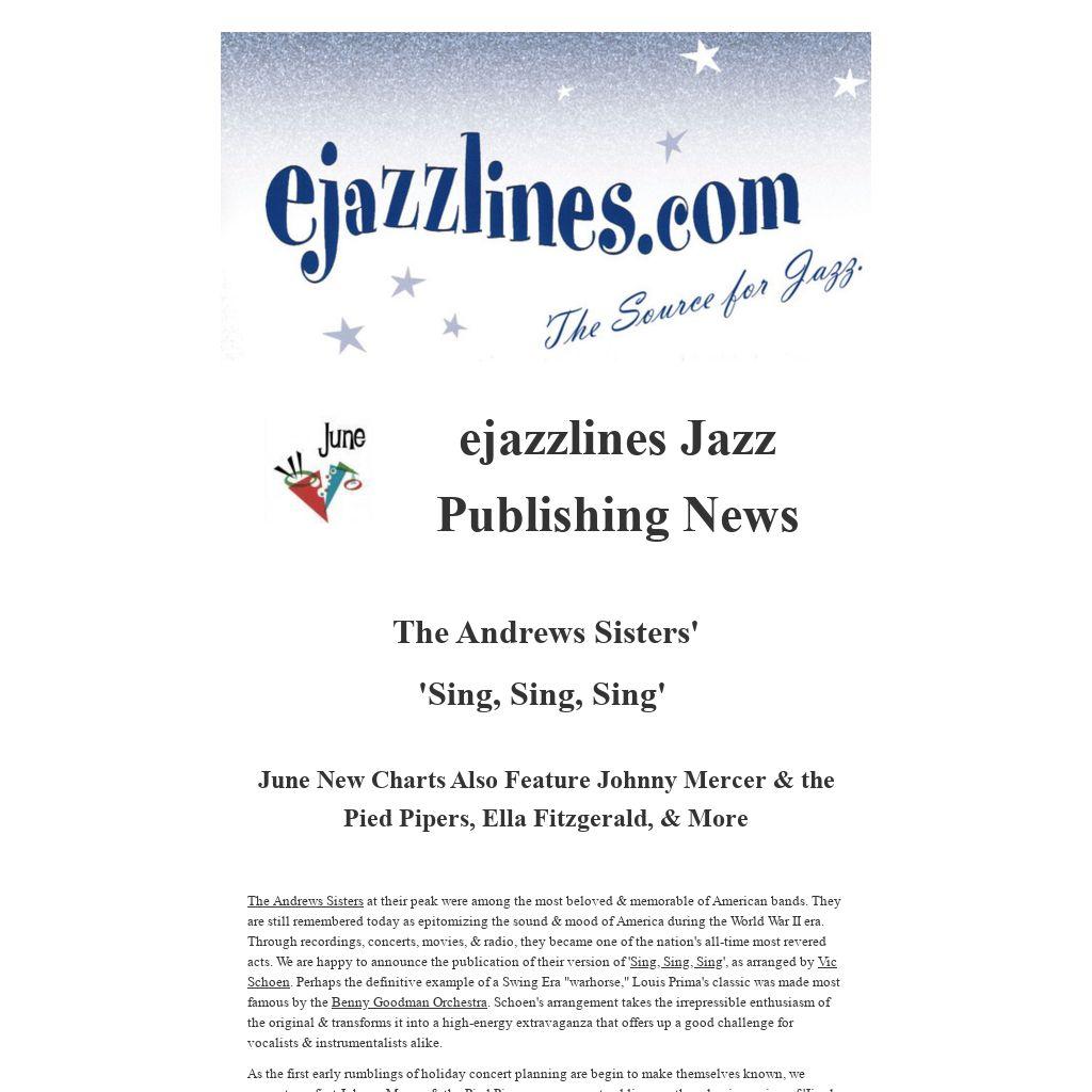 The Andrews Sisters at their peak were among the most beloved & memorable of American bands. They are still remembered today as epitomizing the sound & mood of America during the World War II era. Through recordings, concerts, movies, & radio, they became one of the nation's all-time most revered acts. We are happy to announce the publication of their version of 'Sing, Sing, Sing', as arranged by Vic Schoen. Perhaps the definitive example of a Swing Era "warhorse," Louis Prima's classic was made most famous by the Benny Goodman Orchestra. Schoen's arrangement takes the irrepressible enthusiasm of the original & transforms it into a high-energy extravaganza that offers up a good challenge for vocalists & instrumentalists alike.