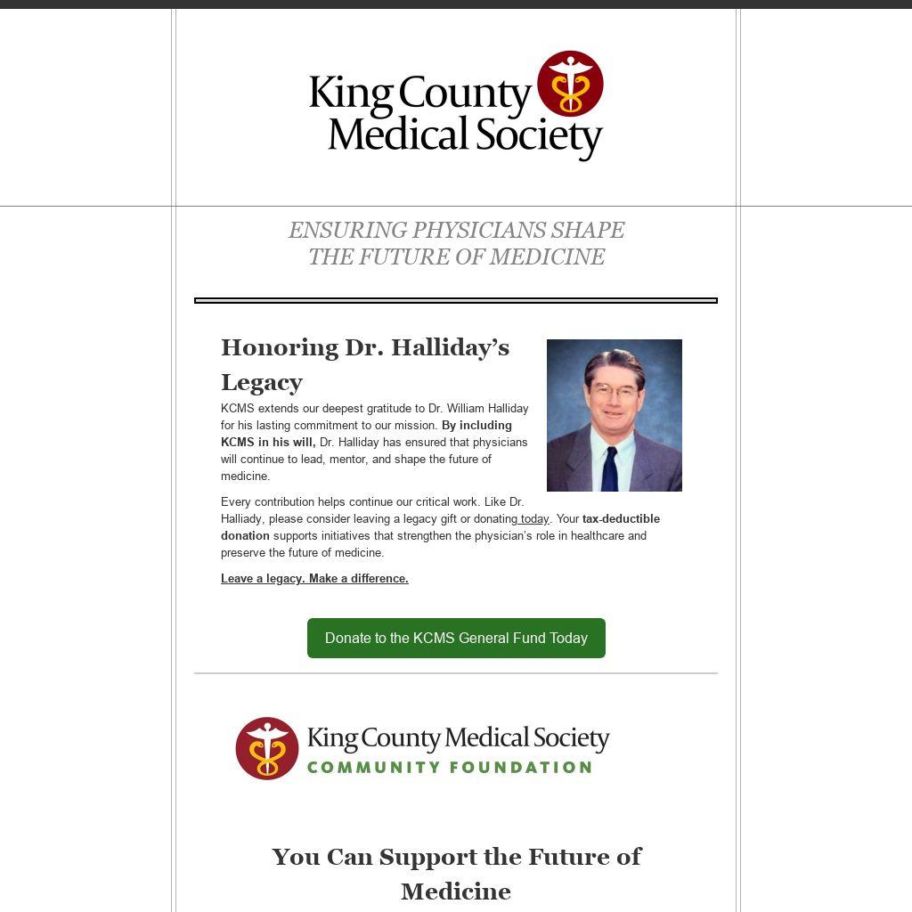 The KCMS Community Foundation (KCMS-CF) is a 501(c)(3) nonprofit charitable organization dedicated to strengthening physician-led medicine and improving public health. Your support directly impacts physicians, patients, and the broader medical community by funding initiatives that: