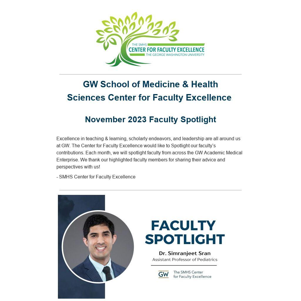 Excellence in teaching & learning, scholarly endeavors, and leadership are all around us at GW. The Center for Faculty Excellence would like to Spotlight our faculty’s contributions. Each month, we will spotlight faculty from across the GW Academic Medical Enterprise. We thank our highlighted faculty members for sharing their advice and perspectives with us!