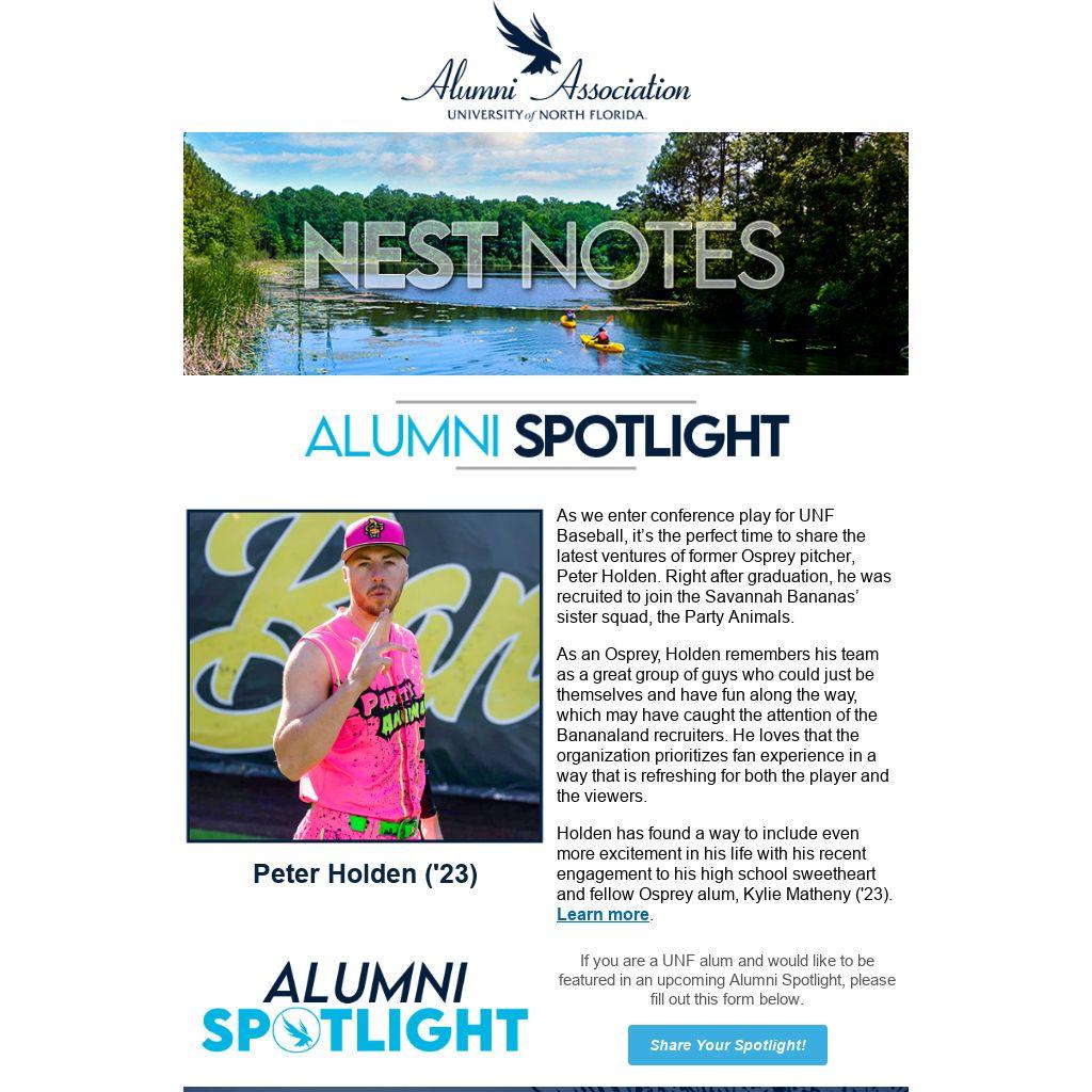 | If you are a UNF alum and would like to be featured in an upcoming Alumni Spotlight, please fill out this form below.