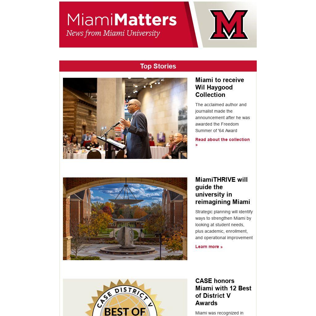 Miami was recognized in photography, podcasts, fundraising, writing, special events, and marketing
