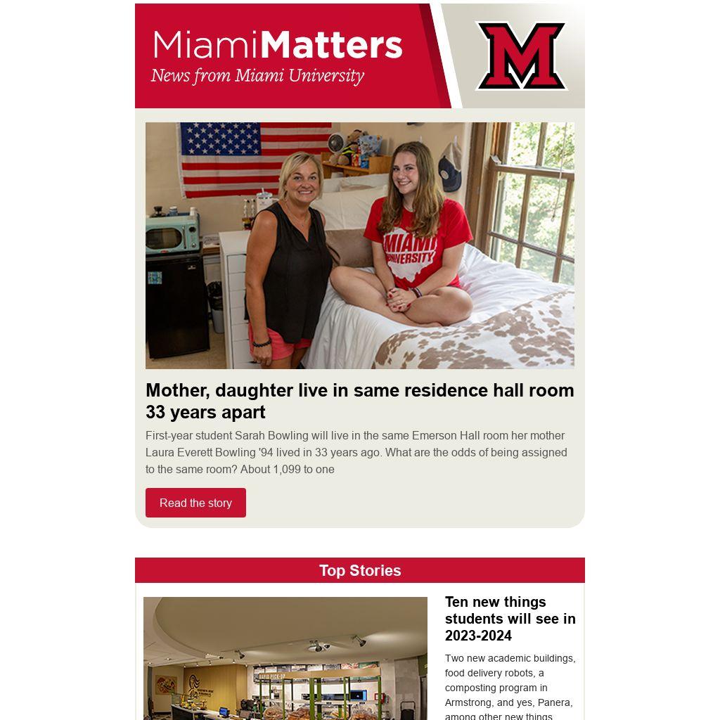 First-year student Sarah Bowling will live in the same Emerson Hall room her mother Laura Everett Bowling '94 lived in 33 years ago. What are the odds of being assigned to the same room? About 1,099 to one