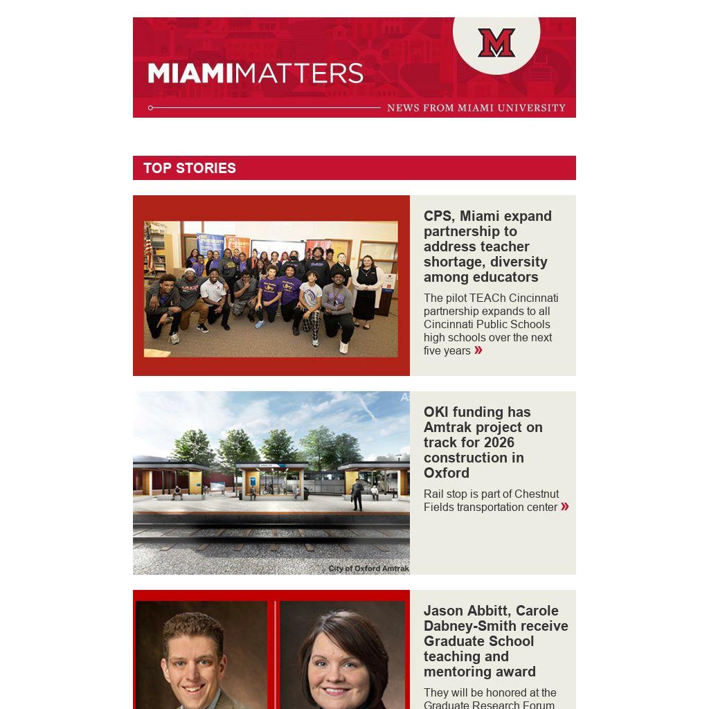 OKI funding for Amtrak platform in Oxford; TEACh Cincinnati partnership