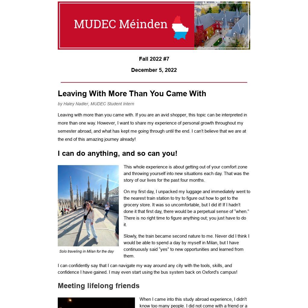 We are happy to share MUDEC events and news with all of you! If you no longer wish to receive the newsletter per GDPR, please unsubscribe below.