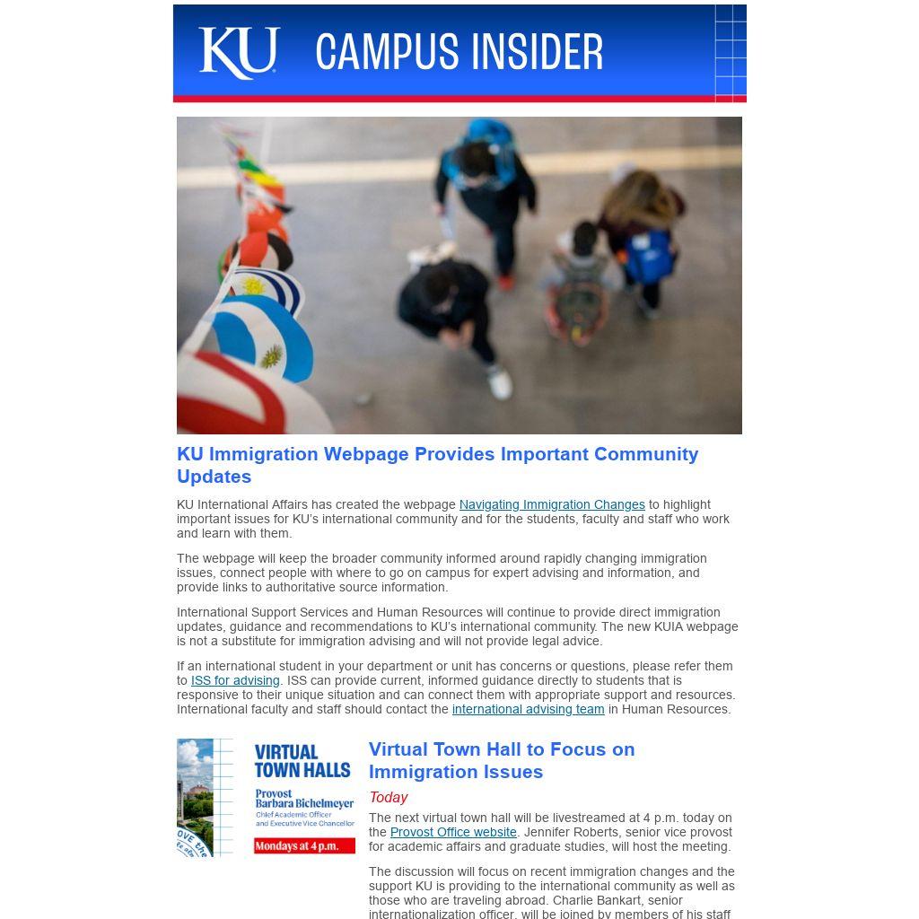International Support Services and Human Resources will continue to provide direct immigration updates, guidance and recommendations to KU’s international community. The new KUIA webpage is not a substitute for immigration advising and will not provide legal advice.