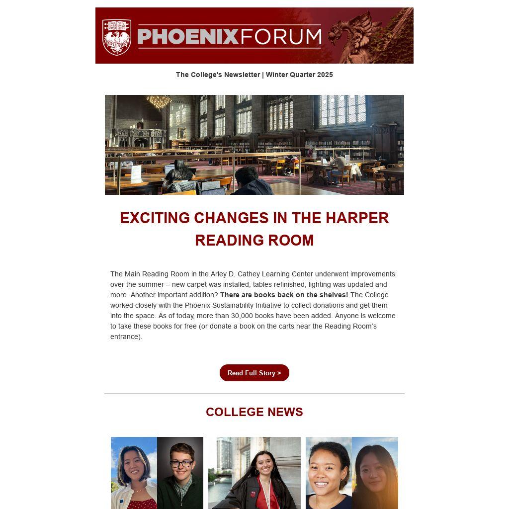 The Main Reading Room in the Arley D. Cathey Learning Center underwent improvements over the summer – new carpet was installed, tables refinished, lighting was updated and more. Another important addition? There are books back on the shelves! The College worked closely with the Phoenix Sustainability Initiative to collect donations and get them into the space. As of today, more than 30,000 books have been added. Anyone is welcome to take these books for free (or donate a book on the carts near the Reading Room’s entrance).