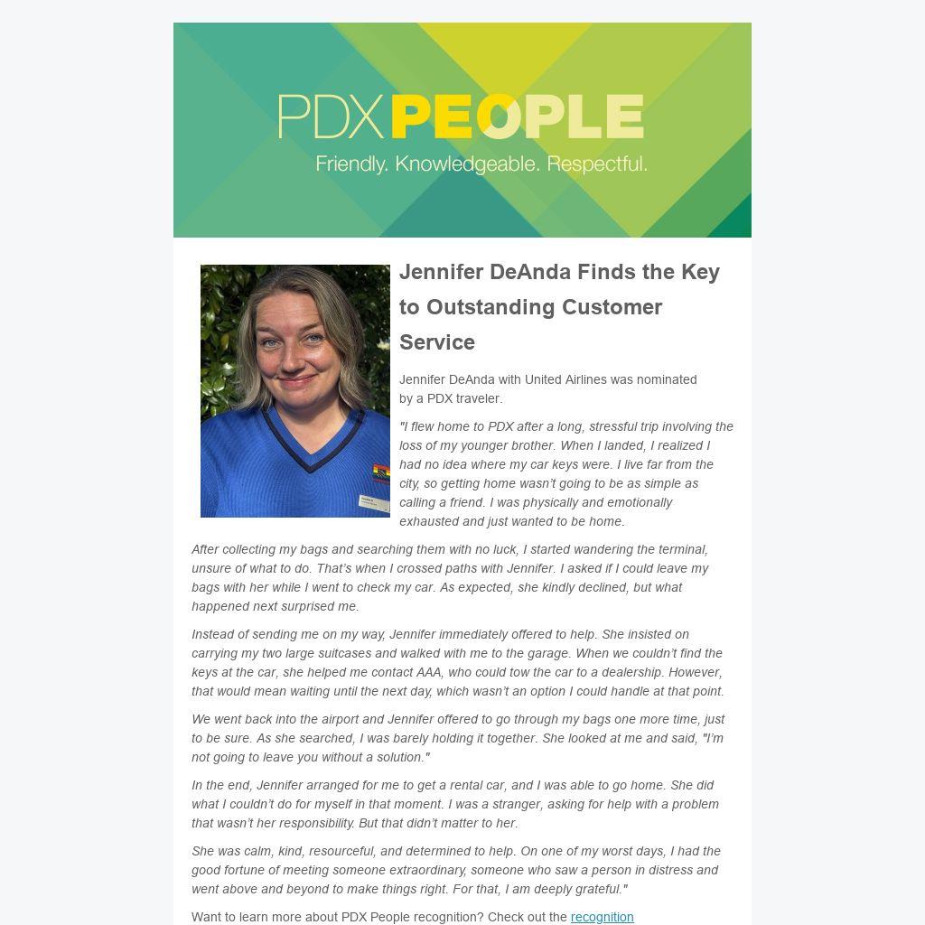 Jennifer DeAnda with United Airlines was nominated by a PDX traveler.