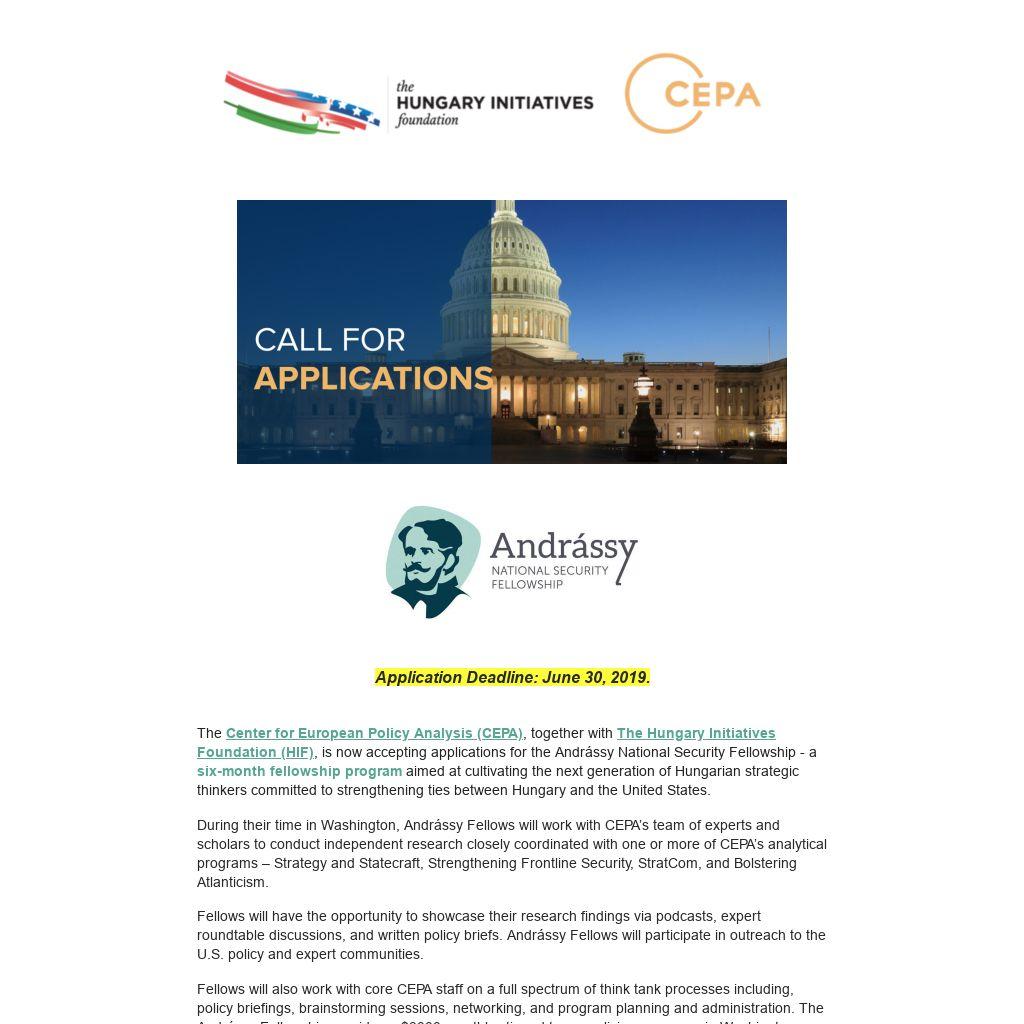 Fellows will have the opportunity to showcase their research findings via podcasts, expert roundtable discussions, and written policy briefs. Andrássy Fellows will participate in outreach to the U.S. policy and expert communities.