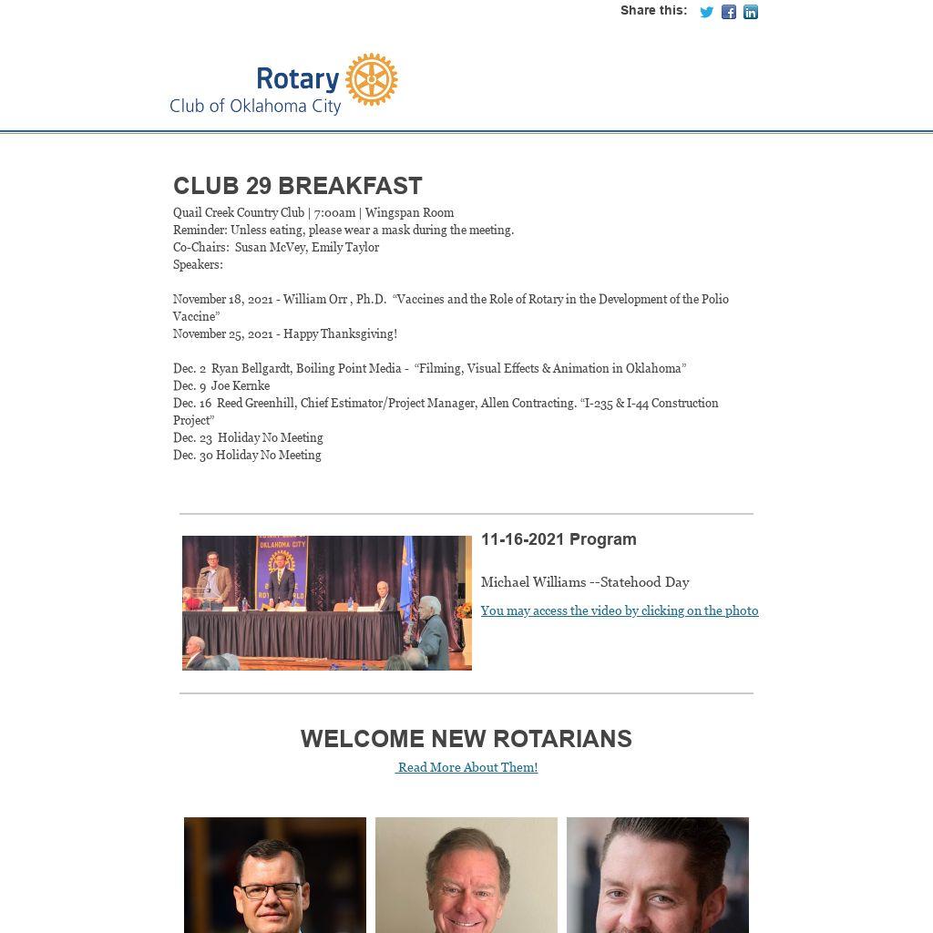 November 18, 2021 - William Orr , Ph.D. “Vaccines and the Role of Rotary in the Development of the Polio Vaccine”
