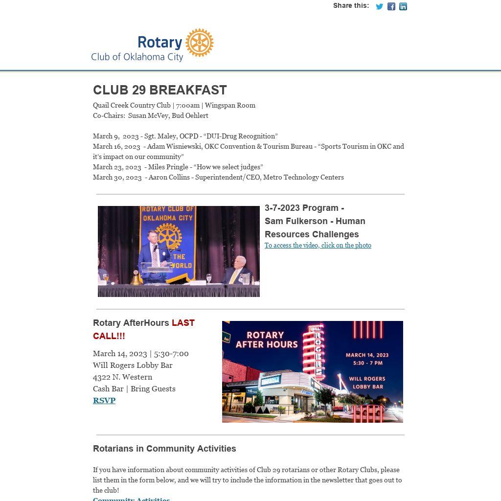 June 13, 2023 - Rotary Meeting location changed to National Cowboy & Western Heritage Museum