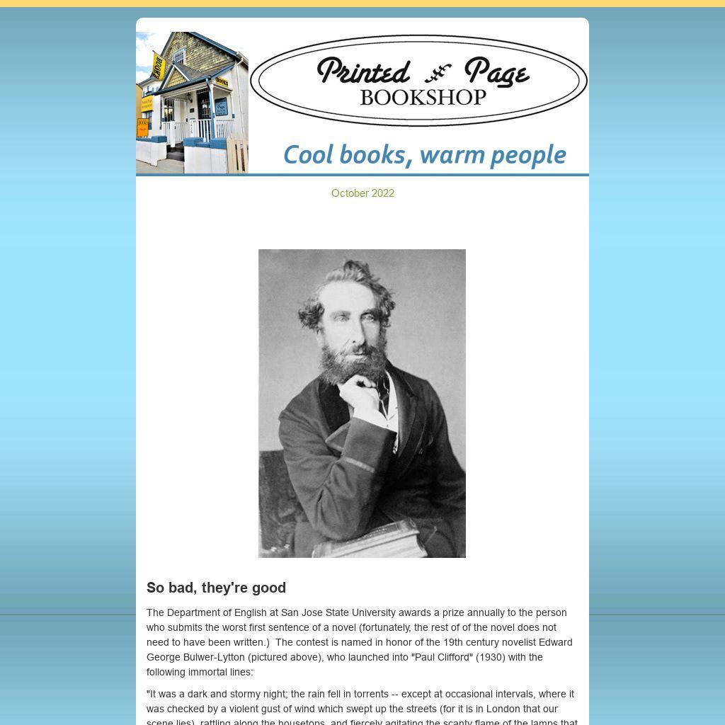 The Department of English at San Jose State University awards a prize annually to the person who submits the worst first sentence of a novel (fortunately, the rest of of the novel does not need to have been written.) The contest is named in honor of the 19th century novelist Edward George Bulwer-Lytton (pictured above), who launched into "Paul Clifford" (1930) with the following immortal lines: