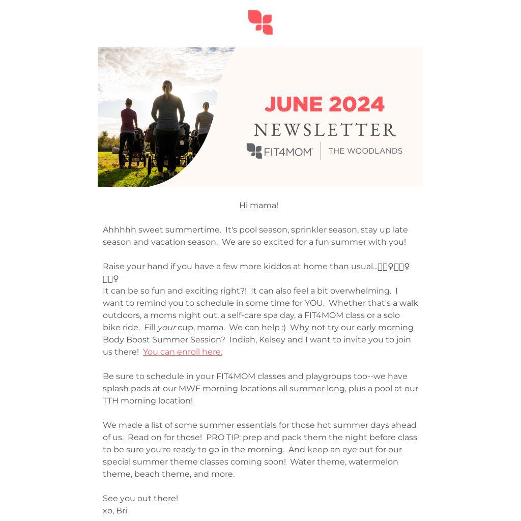 If you have questions or would like help, please feel free to reach out at ANY time! You can reach Bri at briannahunstiger@fit4mom.com // 832-299-4849