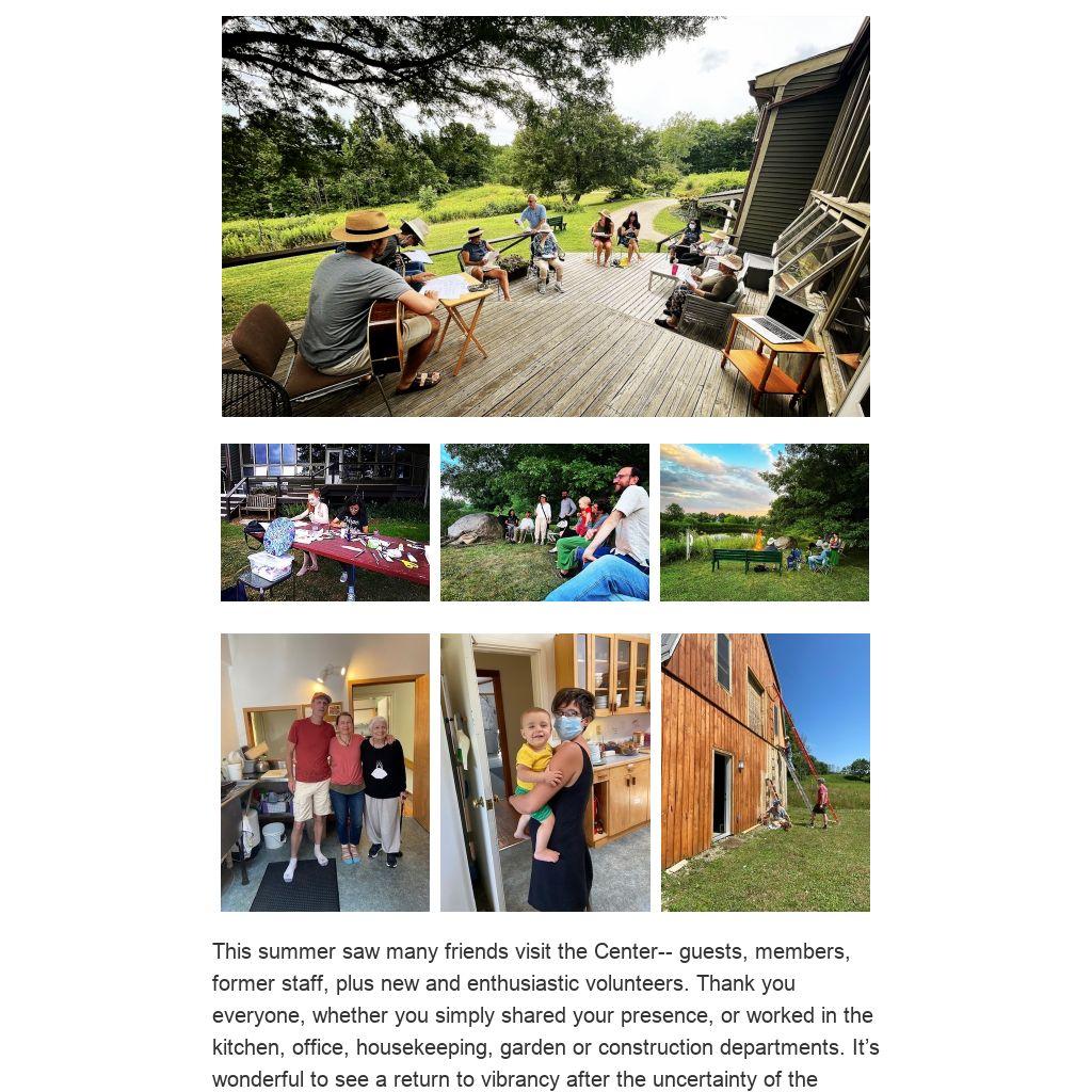 This summer saw many friends visit the Center-- guests, members, former staff, plus new and enthusiastic volunteers. Thank you everyone, whether you simply shared your presence, or worked in the kitchen, office, housekeeping, garden or construction departments. It’s wonderful to see a return to vibrancy after the uncertainty of the pandemic.