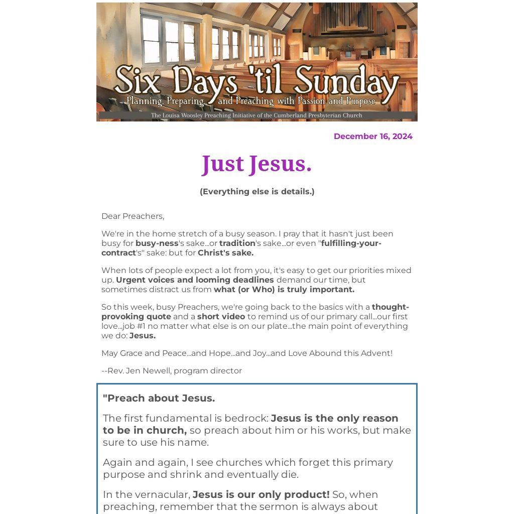 So this week, busy Preachers, we're going back to the basics with a thought-provoking quote and a short video to remind us of our primary call...our first love...job #1 no matter what else is on our plate...the main point of everything we do: Jesus.
