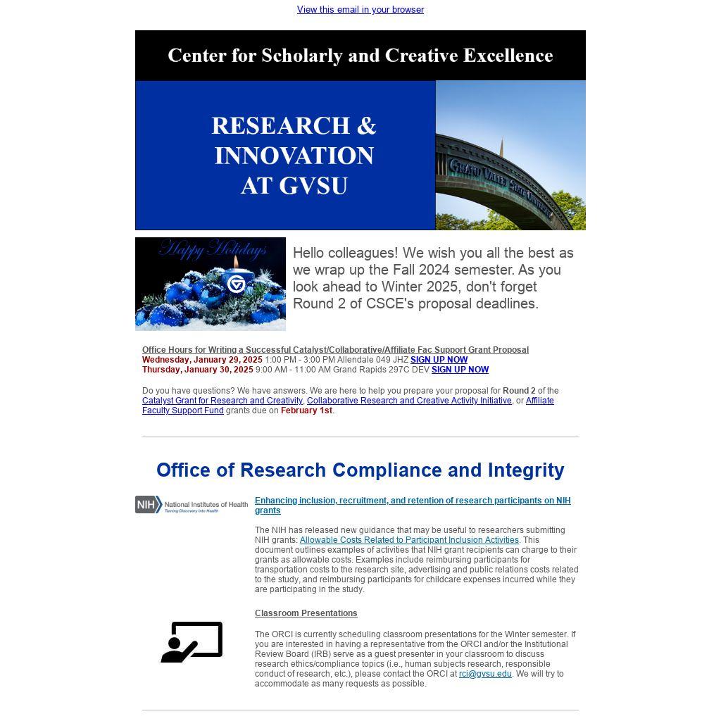 | Hello colleagues! We wish you all the best as we wrap up the Fall 2024 semester. As you look ahead to Winter 2025, don't forget Round 2 of CSCE's proposal deadlines.