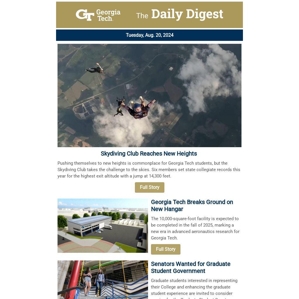 Pushing themselves to new heights is commonplace for Georgia Tech students, but the Skydiving Club takes the challenge to the skies. Six members set state collegiate records this year for the highest exit altitude with a jump at 14,300 feet.