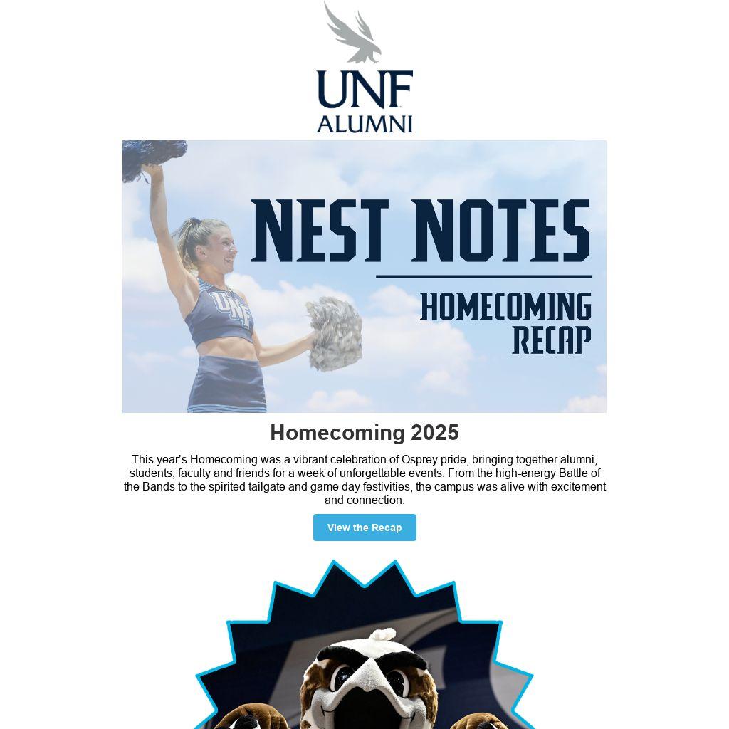 This year’s Homecoming was a vibrant celebration of Osprey pride, bringing together alumni, students, faculty and friends for a week of unforgettable events. From the high-energy Battle of the Bands to the spirited tailgate and game day festivities, the campus was alive with excitement and connection.