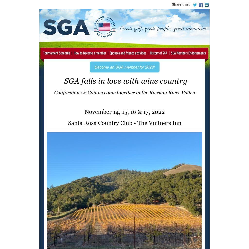| SGA Delights in California Wine Country