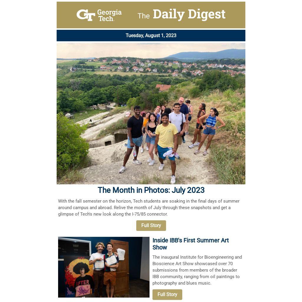 With the fall semester on the horizon, Tech students are soaking in the final days of summer around campus and abroad. Relive the month of July through these snapshots and get a glimpse of Tech's new look along the I-75/85 connector.