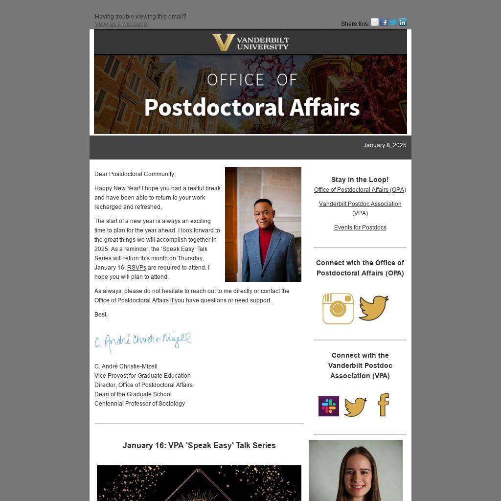 Vanderbilt University Office of Postdoctoral Affairs  |  615.343.1990
