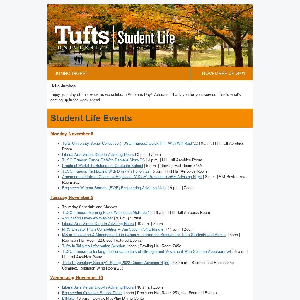 Join us on campus on Tuesday, November 9, at noon for an information session for Tufts students and alumni! This event is a great chance to learn how our MS in Innovation & Management prepares you with the business, leadership, and entrepreneurial skills needed to make an impact in the world through technology. Get information on the BS/MS program and generous tuition discounts for the Tufts community.