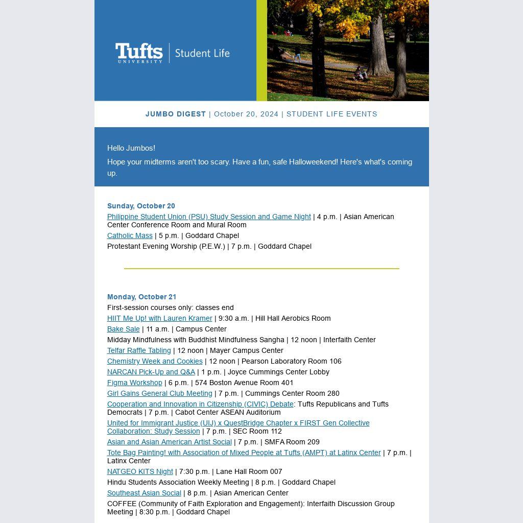 JUMBO DIGEST | October 20, 2024 | STUDENT LIFE EVENTS |