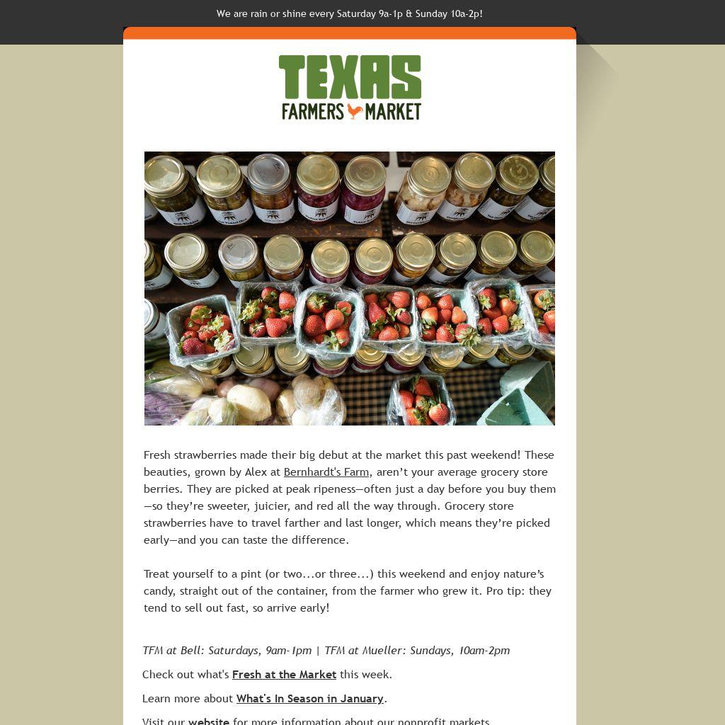 TFM at Bell: Saturdays, 9am-1pm | TFM at Mueller: Sundays, 10am-2pm