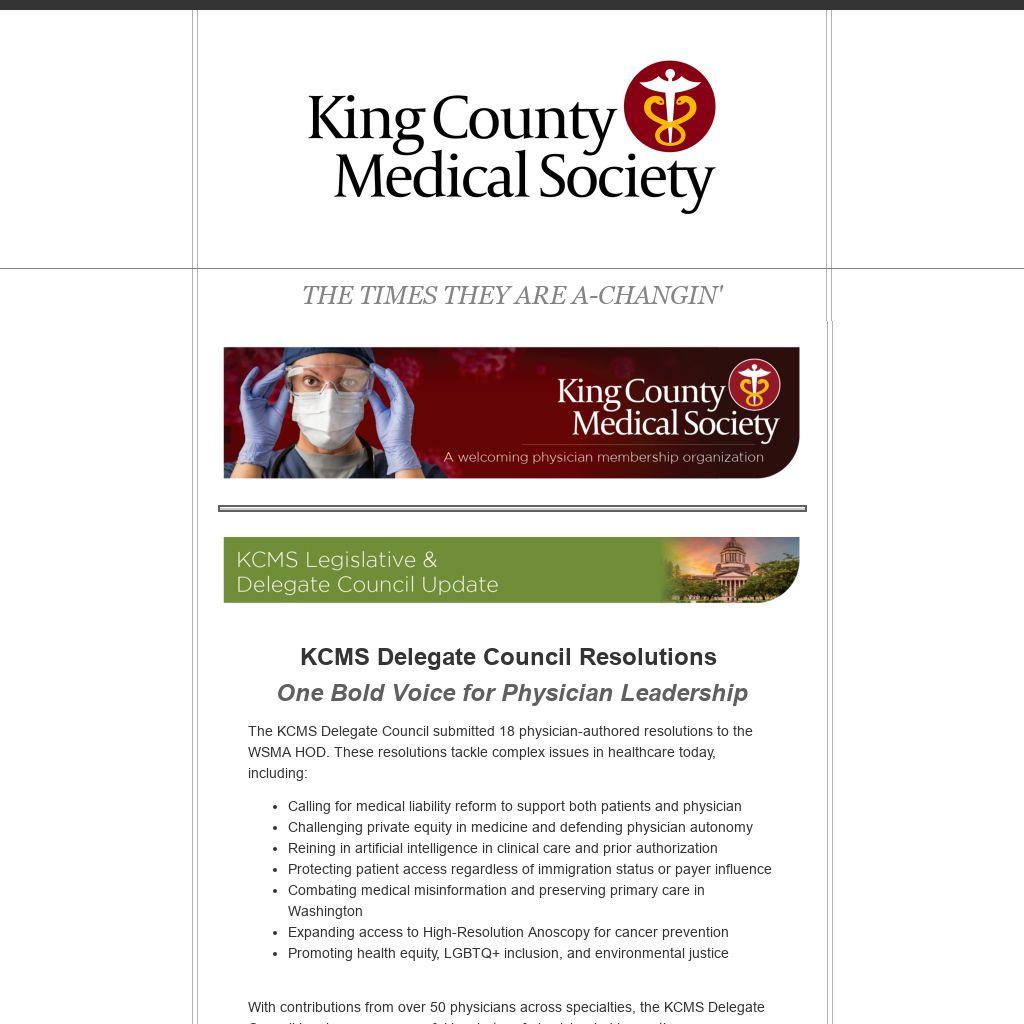 The KCMS Delegate Council submitted 18 physician-authored resolutions to the WSMA HOD. These resolutions tackle complex issues in healthcare today, including: