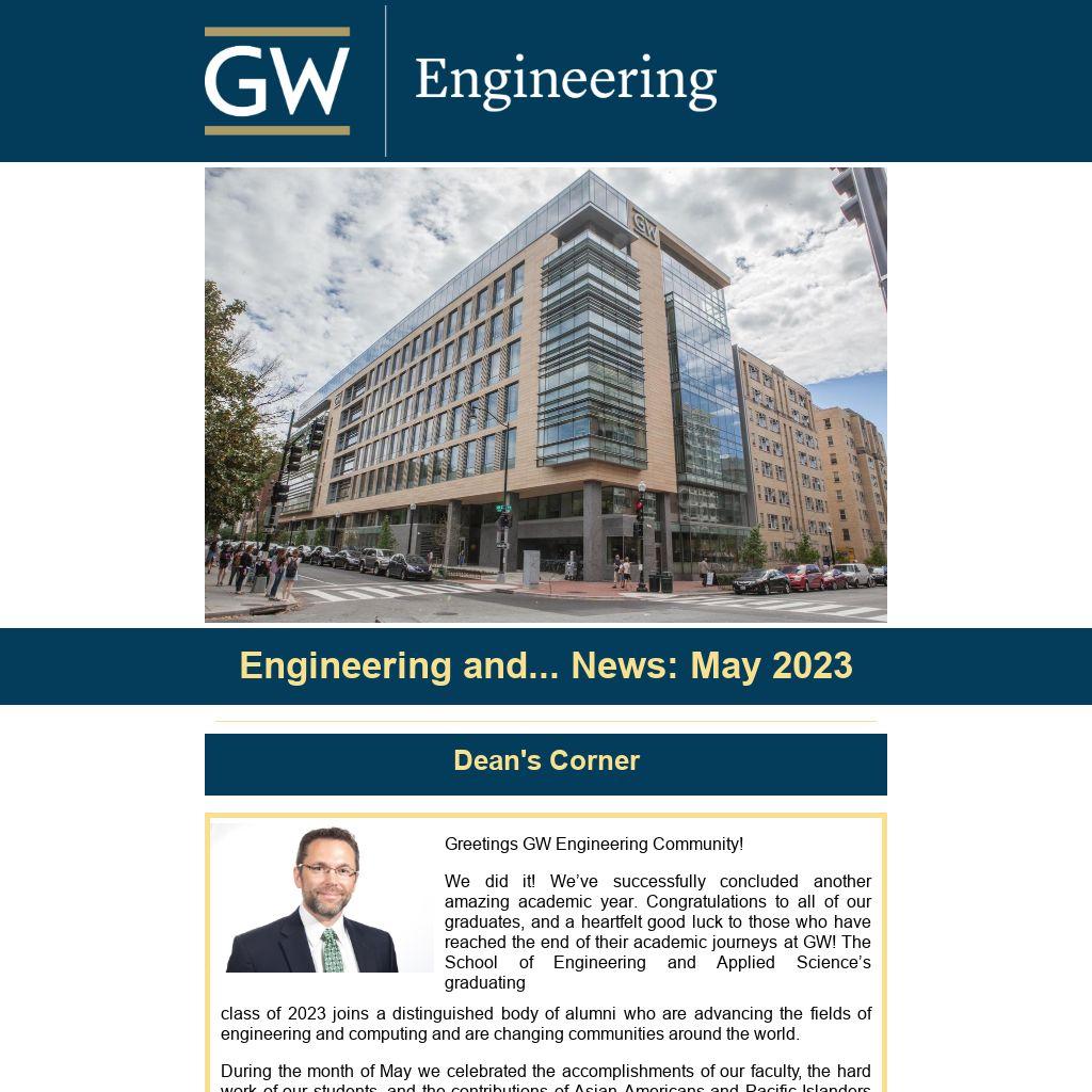 As we close out the month of May and head into the summer months, I want to encourage everyone to use this time to refocus, refresh, and reflect. Despite the challenges of another complex year, we continue to be a world-class engineering school made up of pioneering researchers, caring educators, dedicated staff, and remarkable students. Please note that this will be the last monthly Engineering And... News newsletter until we begin a new academic year in the fall. See you in August!