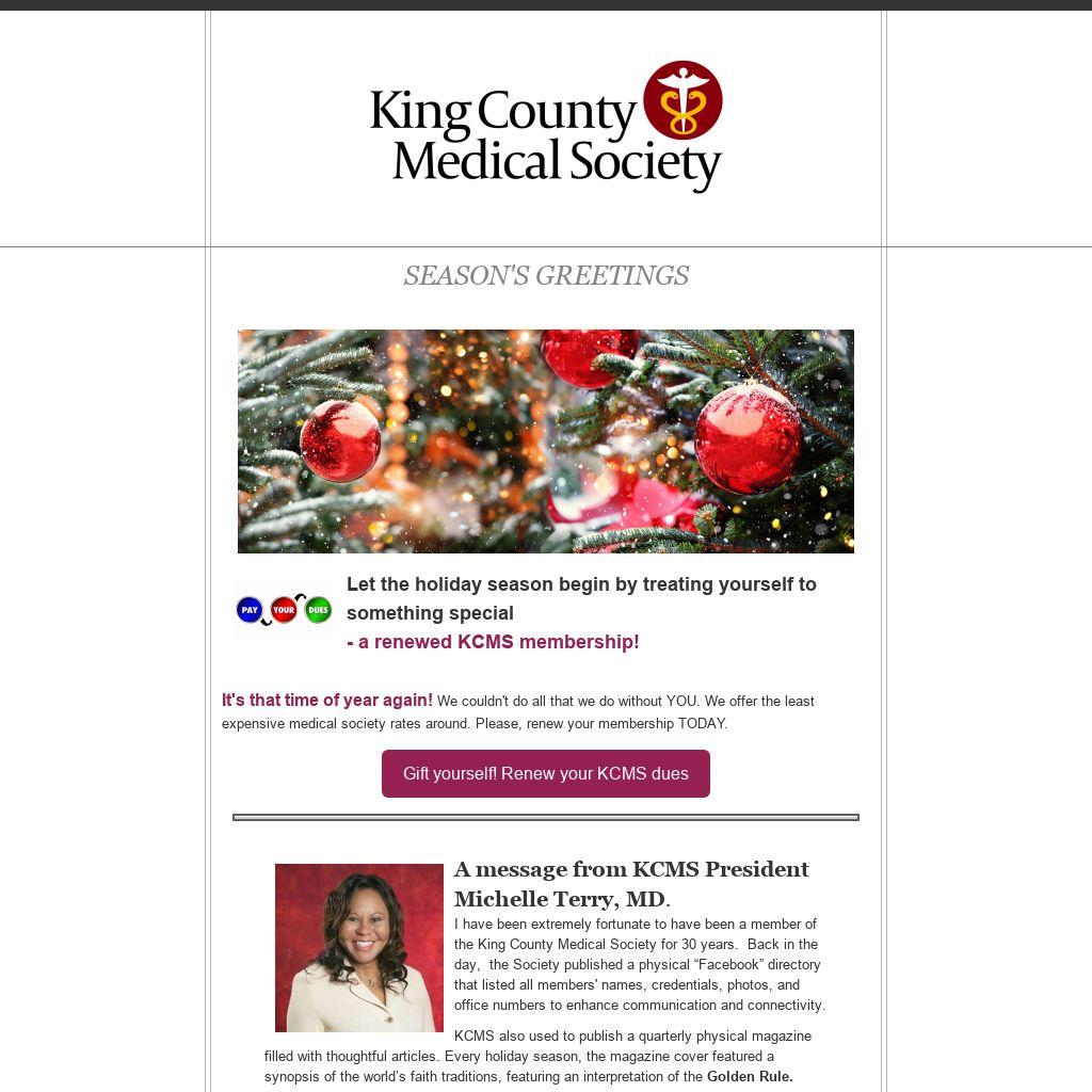 I have been extremely fortunate to have been a member of the King County Medical Society for 30 years. Back in the day, the Society published a physical “Facebook” directory that listed all members' names, credentials, photos, and office numbers to enhance communication and connectivity.