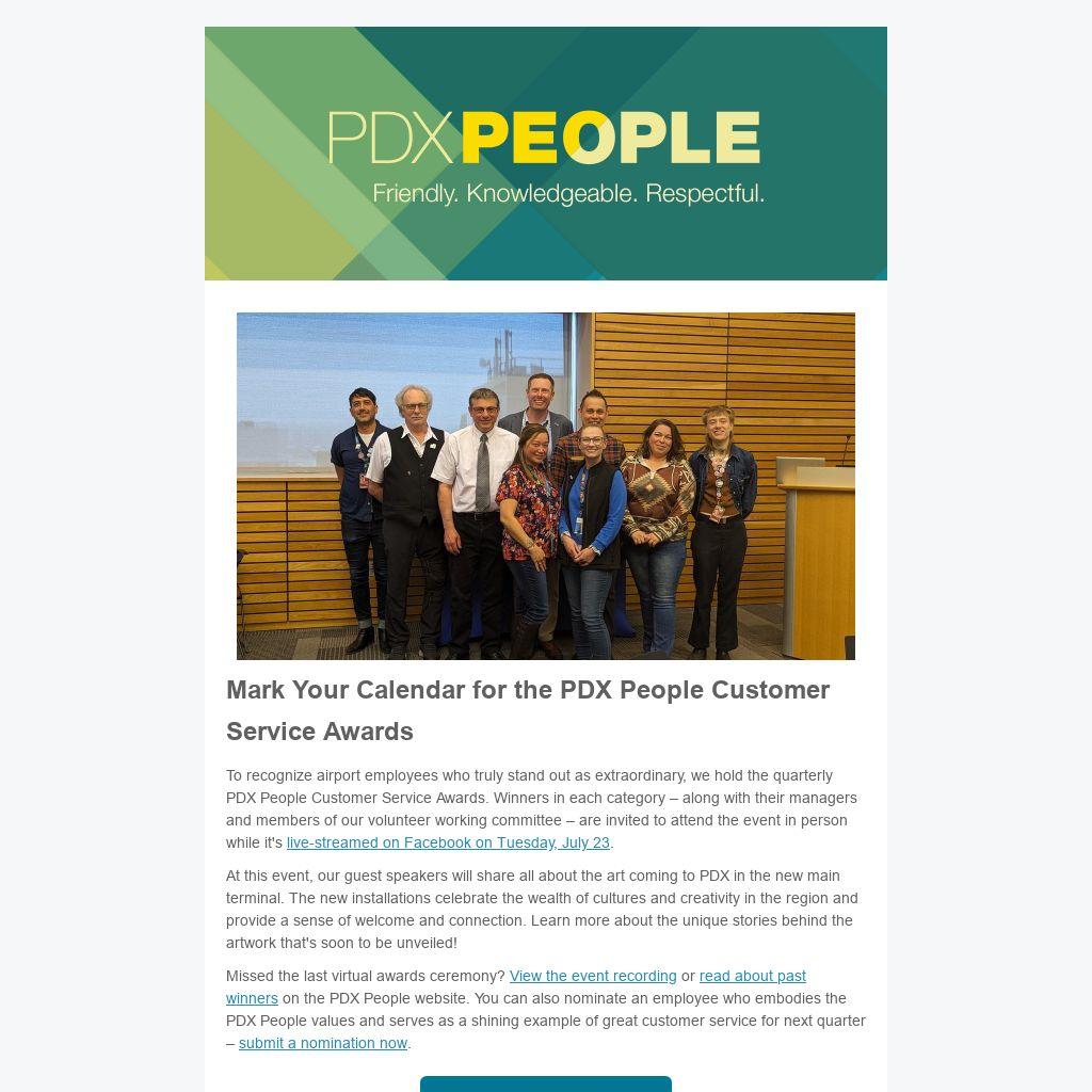 Mark Your Calendar for the PDX People Customer Service Awards