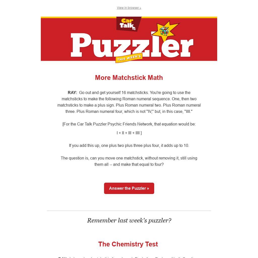 [For the Car Talk Puzzler Psychic Friends Network, that equation would be:
