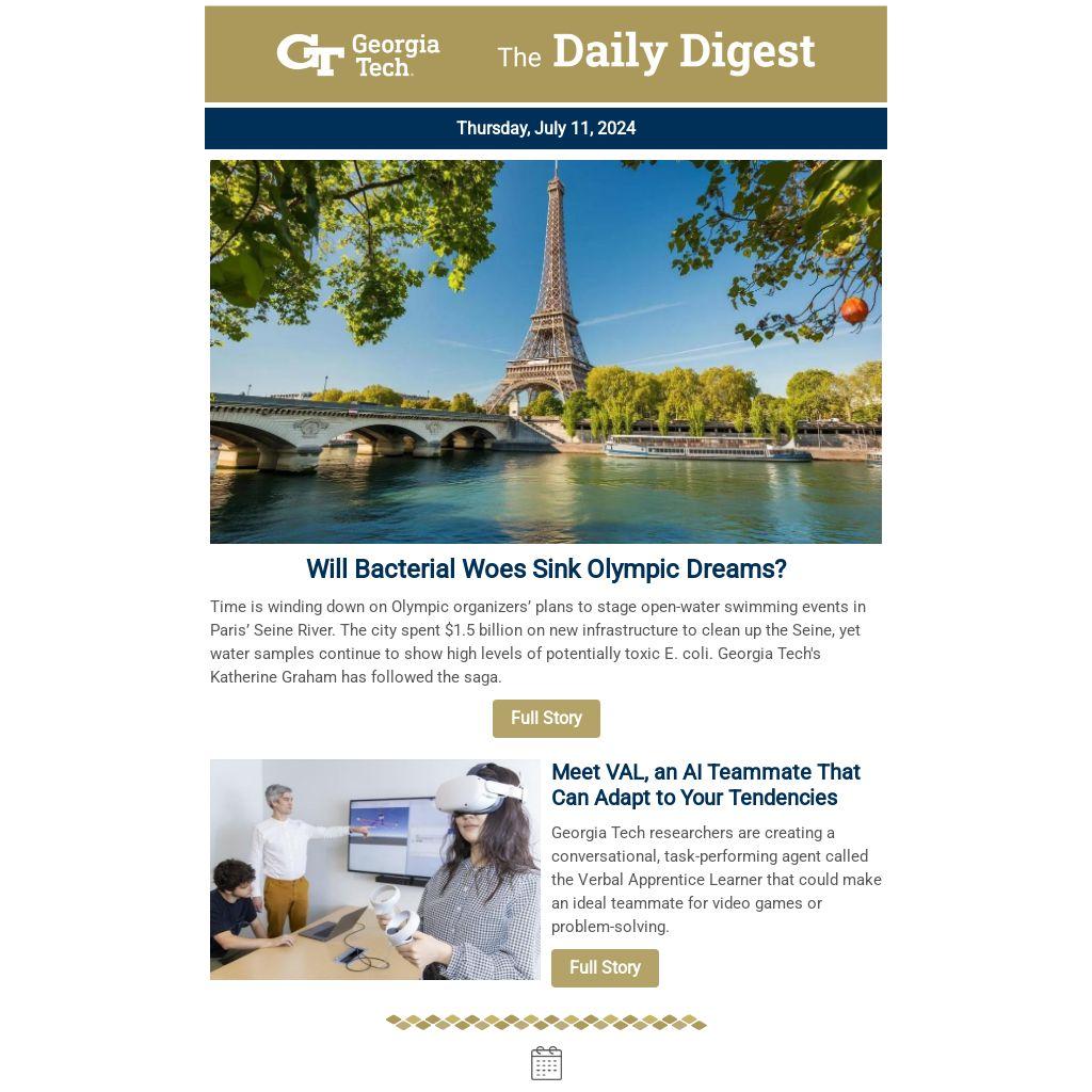 Time is winding down on Olympic organizers’ plans to stage open-water swimming events in Paris’ Seine River. The city spent $1.5 billion on new infrastructure to clean up the Seine, yet water samples continue to show high levels of potentially toxic E. coli. Georgia Tech's Katherine Graham has followed the saga.