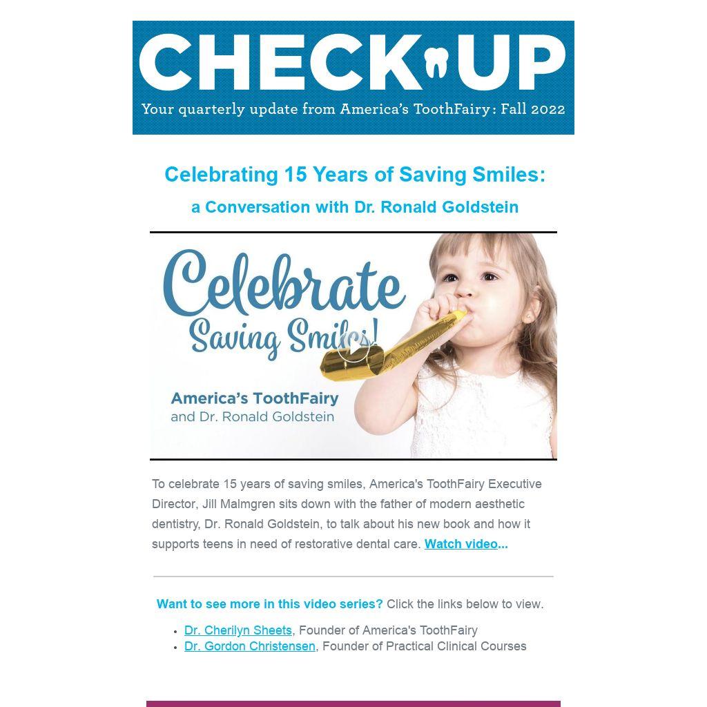 To celebrate 15 years of saving smiles, America's ToothFairy Executive Director, Jill Malmgren sits down with the father of modern aesthetic dentistry, Dr. Ronald Goldstein, to talk about his new book and how it supports teens in need of restorative dental care.Watch video...