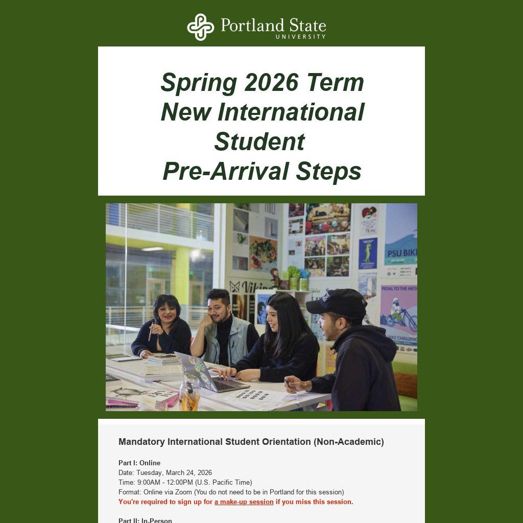 Prepare for your arrival by completing the "New International Student Pre-Arrival Course" and "Living in the City of Roses". After completing these courses, you will be able to learn how to