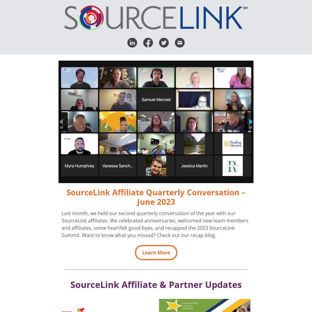 Last month, we held our second quarterly conversation of the year with our SourceLink affiliates. We celebrated anniversaries, welcomed new team members and affiliates, some heartfelt good-byes, and recapped the 2023 SourceLink Summit. Want to know what you missed? Check out our recap blog.