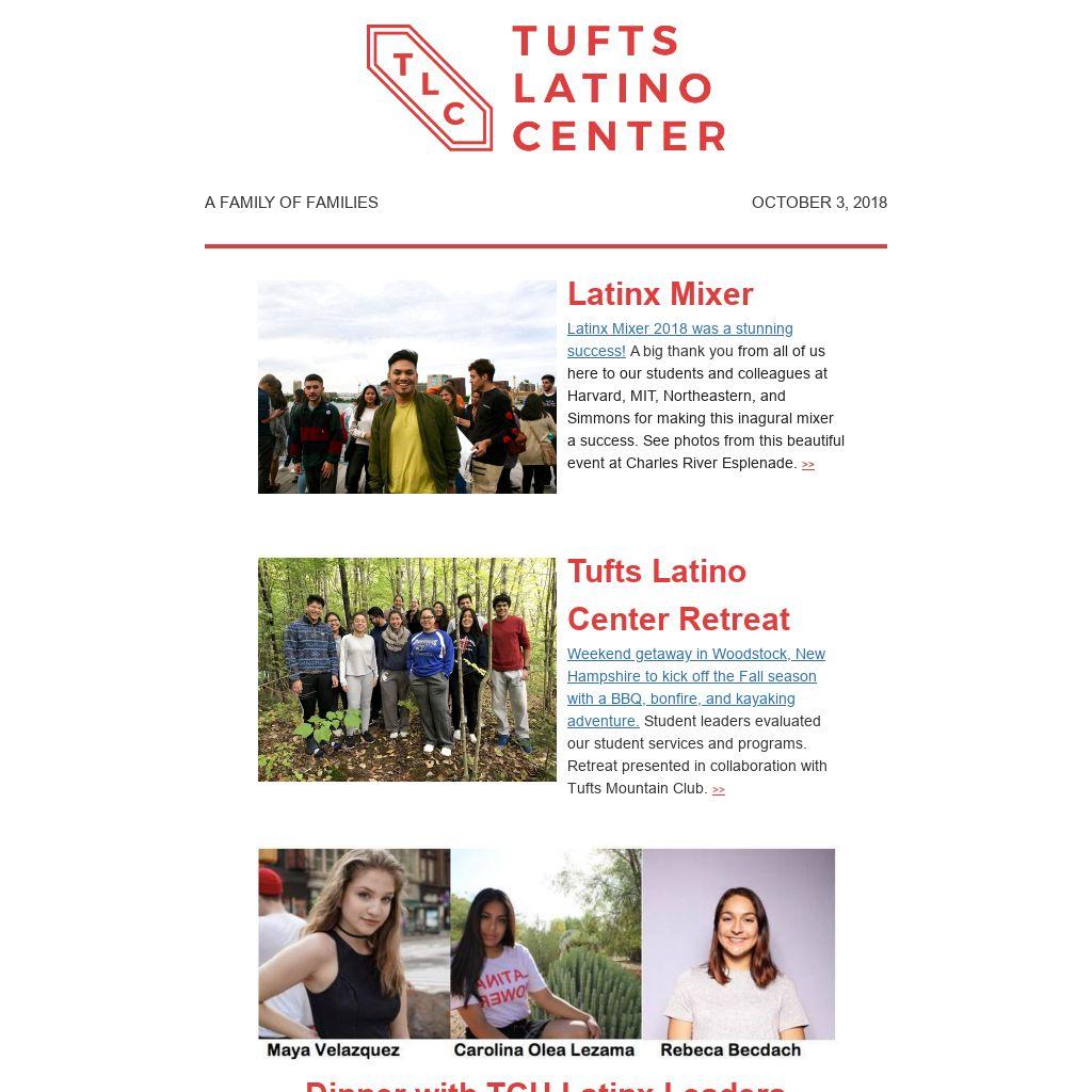 Enjoy a meal 5-6pm on Friday, October 5 with our TCU Latinx Leaders. The Tufts Community Union (TCU) Senate is the main government body for Tufts undergraduate students. Enjoy dinner and meet the student leaders who represent our Latinx, Caribbean, and Latin American community. >>