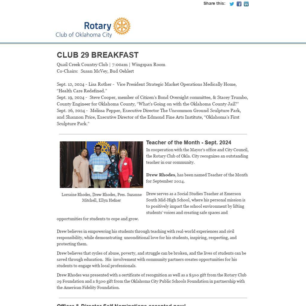 In cooperation with the Mayor's office and City Council, the Rotary Club of Okla. City recognizes an outstanding teacher in our community.