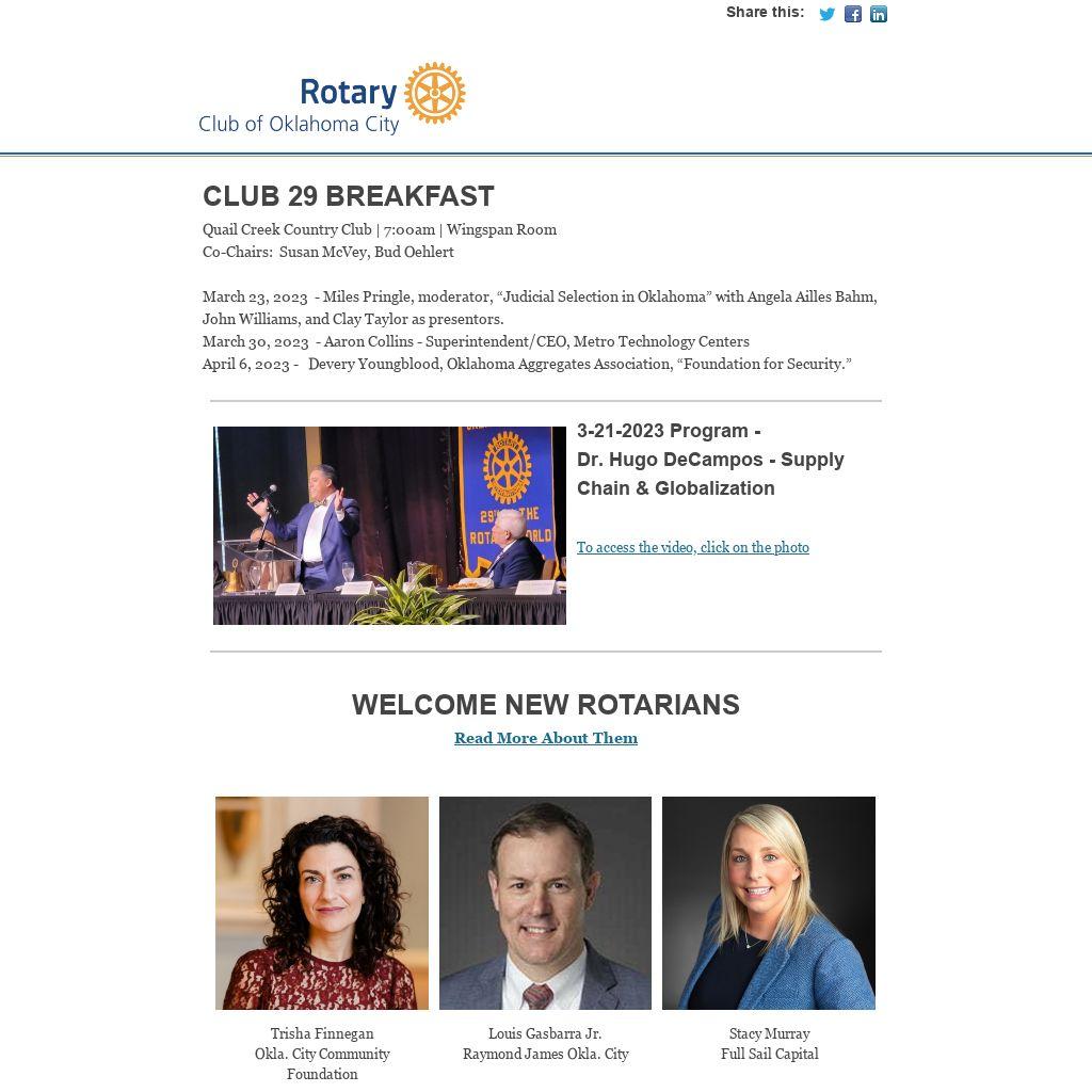 June 13, 2023 - Rotary Meeting location changed to National Cowboy & Western Heritage Museum