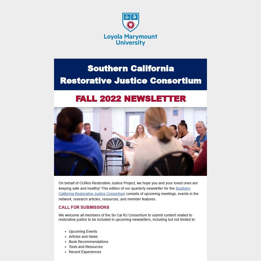 LMU Restore in the Division of Student Affairs at Loyola Marymount University aims to help students grow in their development of skills for managing conflict when it naturally occurs through providing education and resolution options. It also fosters relationship building and harm prevention efforts for the campus community focused on transformative, equity-based policy, practice and systems change. LMU Restore was awarded an Innovation Grant from the Jesuit Association of Student Personnel Administrators (JASPA) that was executed between 2020-2022. The Grant Summary Report was authored by Julia Wade, and the grant funded the Restorative Justice Conference Facilitators Apprenticeship.