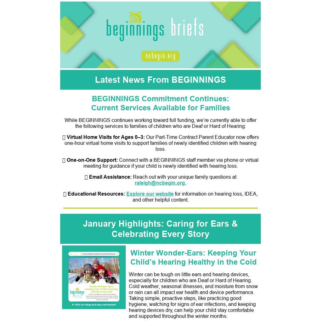✨ One-on-One Support: Connect with a BEGINNINGS staff member via phone or virtual meeting for guidance if your child is newly identified with hearing loss.