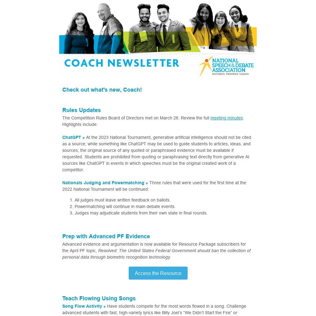 If you are eligible to participate in our survey, you would have received an email on April 11 from info@speechanddebate.org via SurveyMonkey with the subject line Response Requested: 2023 NSDA Membership and Resource Survey. Be sure to check your spam folder! We hope you'll take the time to participate and share your perspective.