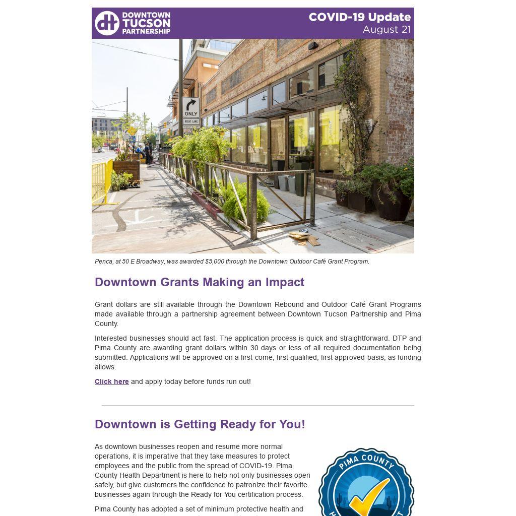 Grant dollars are still available through the Downtown Rebound and Outdoor Café Grant Programs made available through a partnership agreement between Downtown Tucson Partnership and Pima County.