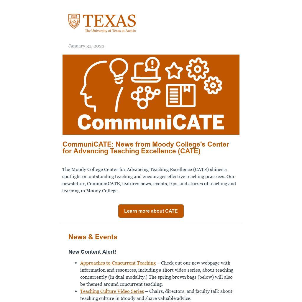 The Course Clarity Project seeks to help faculty across the university to include learning outcomes explicitly on syllabi. If you are not familiar with how to write concrete, measurable learning outcomes, please contact MoodyCATE@austin.utexas.edu. CATE staff have expertise in this area and we are more than willing to help.