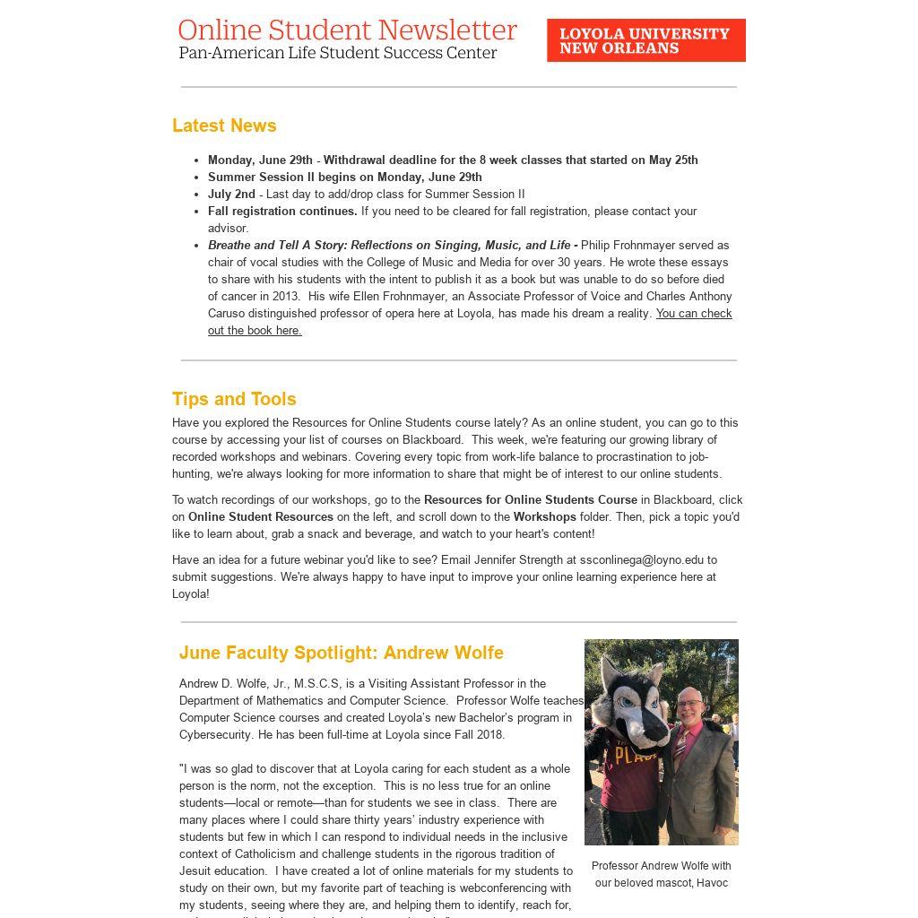 Each issue we will feature an online student or faculty/staff member who embodies the Ignatian ideals of faith, truth, justice, and service in our online community. If you'd like to nominate someone, please contact ssconlinega@loyno.edu to share who and why you think deserves to be in the spotlight.