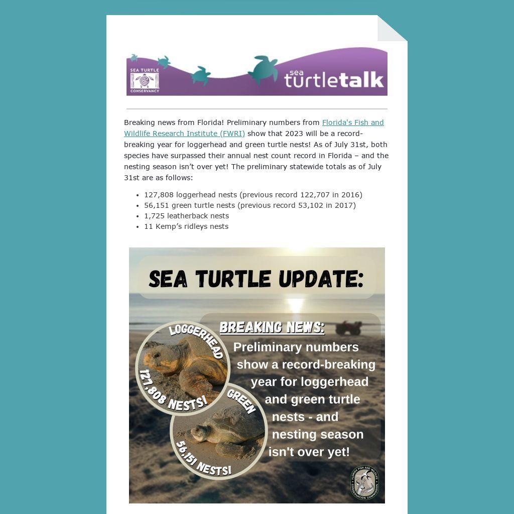 The leatherback nesting season has concluded for this year, and loggerhead nesting activity slows down in August. Green turtles should still be nesting in large numbers during August and to some extent in September. We look forward to seeing what the final nest counts will be!