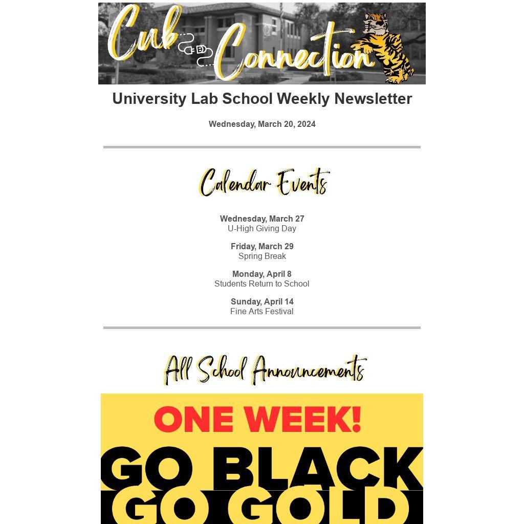 University Lab School Weekly Newsletter |